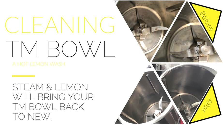 - Remove the lemon and wash out the TM bowl. The bowl will become really shiny if you also polish with a microfibre cloth.